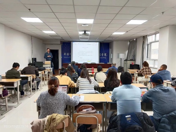 帕尔哈提江·吐尔逊以师范专业认证的意义、理念、要求及指标体系开篇,详细解读了物理学师范专业人才培养方案,并就其中的培养目标、毕业要求、课程设置等方面需要修订完善的地方做了说明。他建议老师们从“一践行、三学会”毕业要求入手,结合所授课程的特点,做好课程对毕业要求的支撑关系矩阵图,把握好课程对毕业要求的支撑强度及权重。此外,他还针对物理学课程教学大纲不规范不统一的情况,建议每位老师要进一步明确师范专业认证的理念及要求,并以此为指导编制课程教学大纲,做好课程目标与毕业要求指标点、教学内容与课程目标、教学方法与课程目标、教学考核与课程目标等方面的对应,真正为物理学师范专业认证做好铺垫。