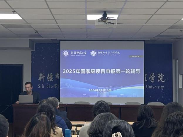 根据学院第四届学术交流月活动安排,为了进一步提升今年会教师国家自然科学基金项目的申报质量,增加申报成功率,11月13日,物理与电子工程学院组织开展了2025年国家自然科学基金项目申报专题辅导报告会,报告会以线上线下相结合的方式进行,由学院副院长帕尔哈提江·吐尔孙主持。今年会天池特聘教授、中国科学院物理研究所刘伍明研究员的合作博士后朱汉杰博士与中国地质大学陆内火山与地震教育部重点实验室郭林燕副教授主讲,学院全体教师听取辅导报告。