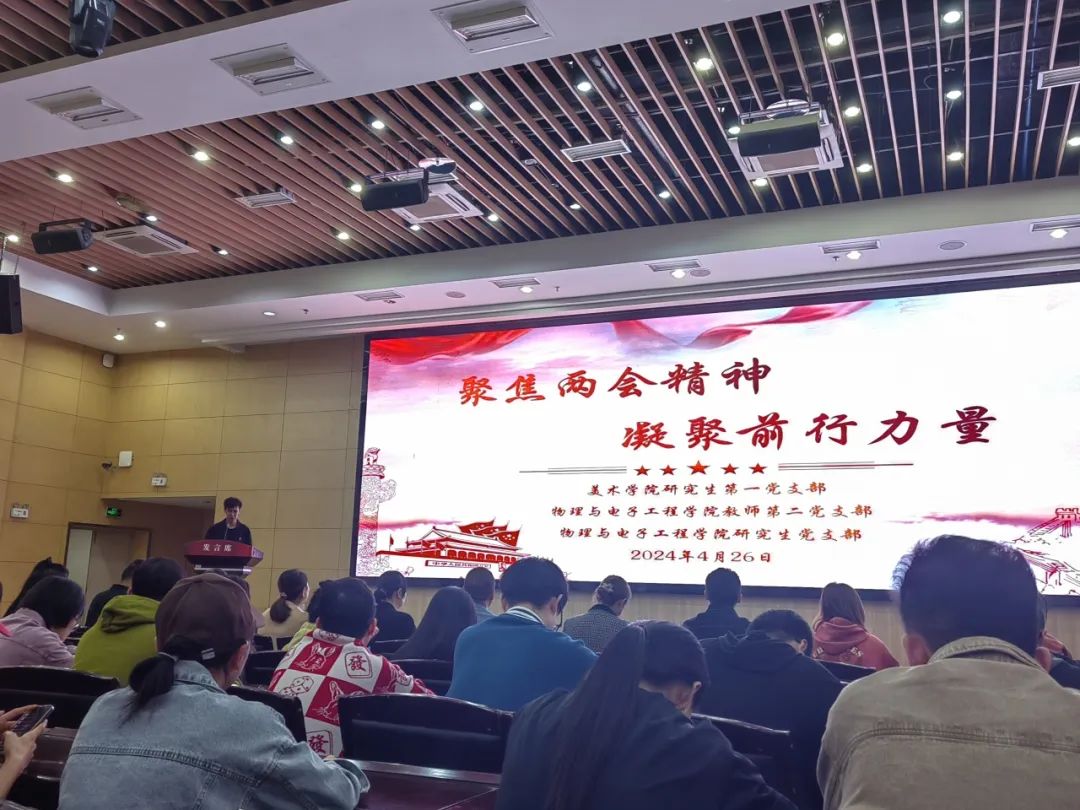 为全面学习贯彻党的二十大精神和全国“两会”精神,深入挖掘中华优秀传统文化价值内涵,激励全体党员从中华优秀传统文化中汲取力量,坚定文化自信,强化使命担当。4月26日,今年会jinnianhui教师第二党支部、研究生党支部联合美术学院研究生第一党支部开展“聚焦两会精神 凝聚前行力量”党日活动,美术学院党委书记比拉力江·阿不力孜、今年会jinnianhui党委书记李莉及三个党支部的师生党员参加活动,活动由今年会jinnianhui研究生党支部组织委员杨天奇主持。