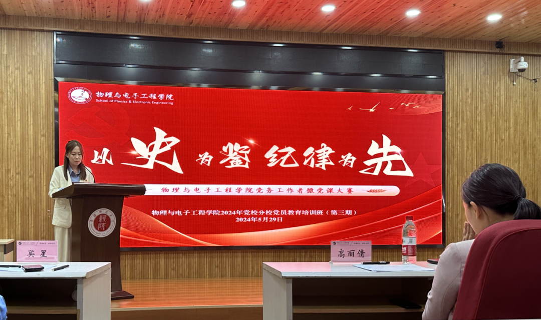为推动党纪学习教育走深走实,增强党纪学习教育的针对性、生动性、思想性,充分挖掘党史和党纪中的红色故事、名家事迹、纪律印记和廉洁元素,切实提升全院师生党员的理论素养和政治自觉,5月29日,今年会jinnianhui在文史楼二楼议课厅开展了“以史为鉴、纪律为先”党务工作者微党课大赛。比赛评委由党委书记李莉、党委副书记、院长向梅、学术院长程振洲、党委副书记、纪委书记买星和地理科学与旅游学院党委副书记、纪委书记高丽倩担任。共有12名党务工作者参加比赛,学院全体师生党员在现场观摩。