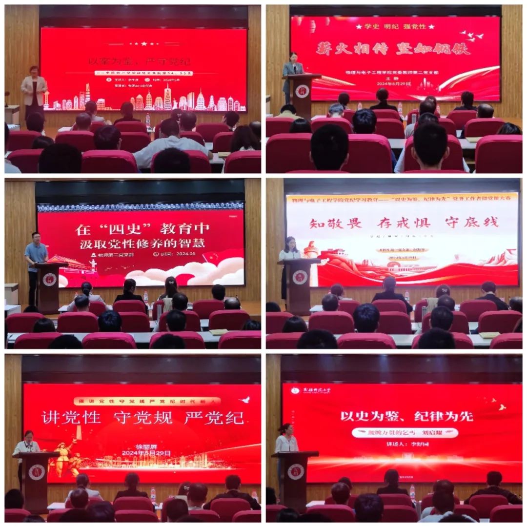 活动伊始,全体师生党员在党委书记李莉的带领下,学习了《习近平关于全面加强党的纪律建设论述摘编》相关内容。随后,各支部书记主要围绕党的纪律讲授纪律党课,各支部委员围绕党史主题讲授党史党课,他们以饱满的热情、生动的语言和鲜活的事例,讲述了党的历史、解读了党的纪律,比赛现场如火如荼。经过激烈角逐,张冬波老师获得特等奖,杨天奇和王静老师获一等奖,郑叶、李舒园老师、赵海琴老师和徐丽屏老师获二等奖,韩振华老师、周丽茹、焦夏卓、王孟、陈燕获三等奖。
