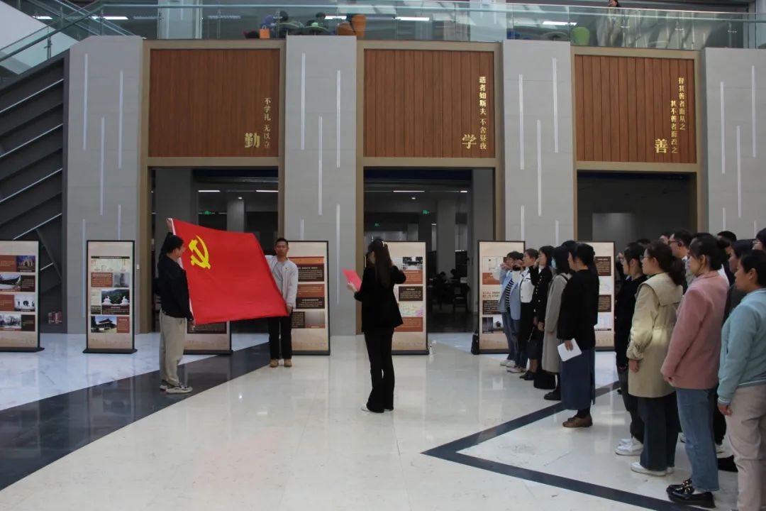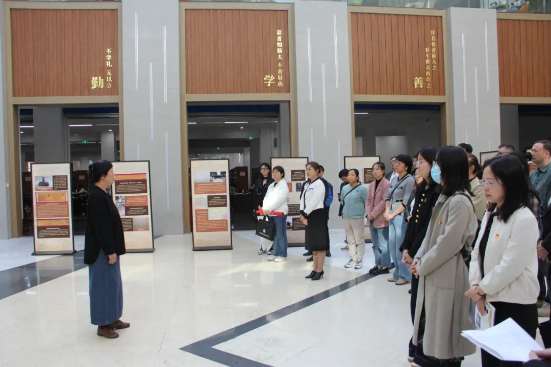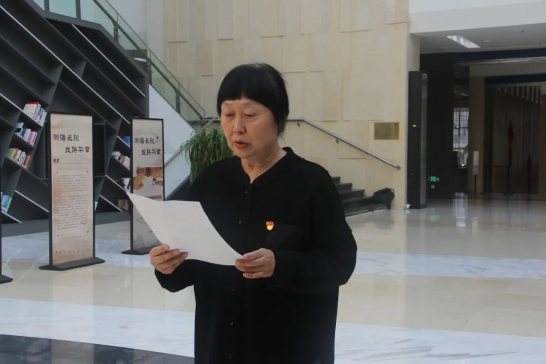 活动伊始,党委书记李莉同志带领全体党员学习了《习近平在庆祝中华人民共和国成立75周年招待会上的讲话》,党委副书记、院长向梅同志带领全体党员重温入党誓词。随后,全体党员参观了新疆“丝绸之路”档案文献展。本次展览分为序篇和丝路记忆、古道新生、丝路复兴等部分,共包含13个篇章。展览通过丰富、珍贵的档案文献,全面展示了新疆“丝绸之路”的历史、以及新疆各民族在不断交往交流交融的历史进程中共同开发建设保卫新疆的历史,展示了新疆作为“丝绸之路经济带核心区”建设的阶段性成果。教师第一党支部教师党员代表李兆雪和教师第二党支部教师党员代表范佳薇分享了参观体会。