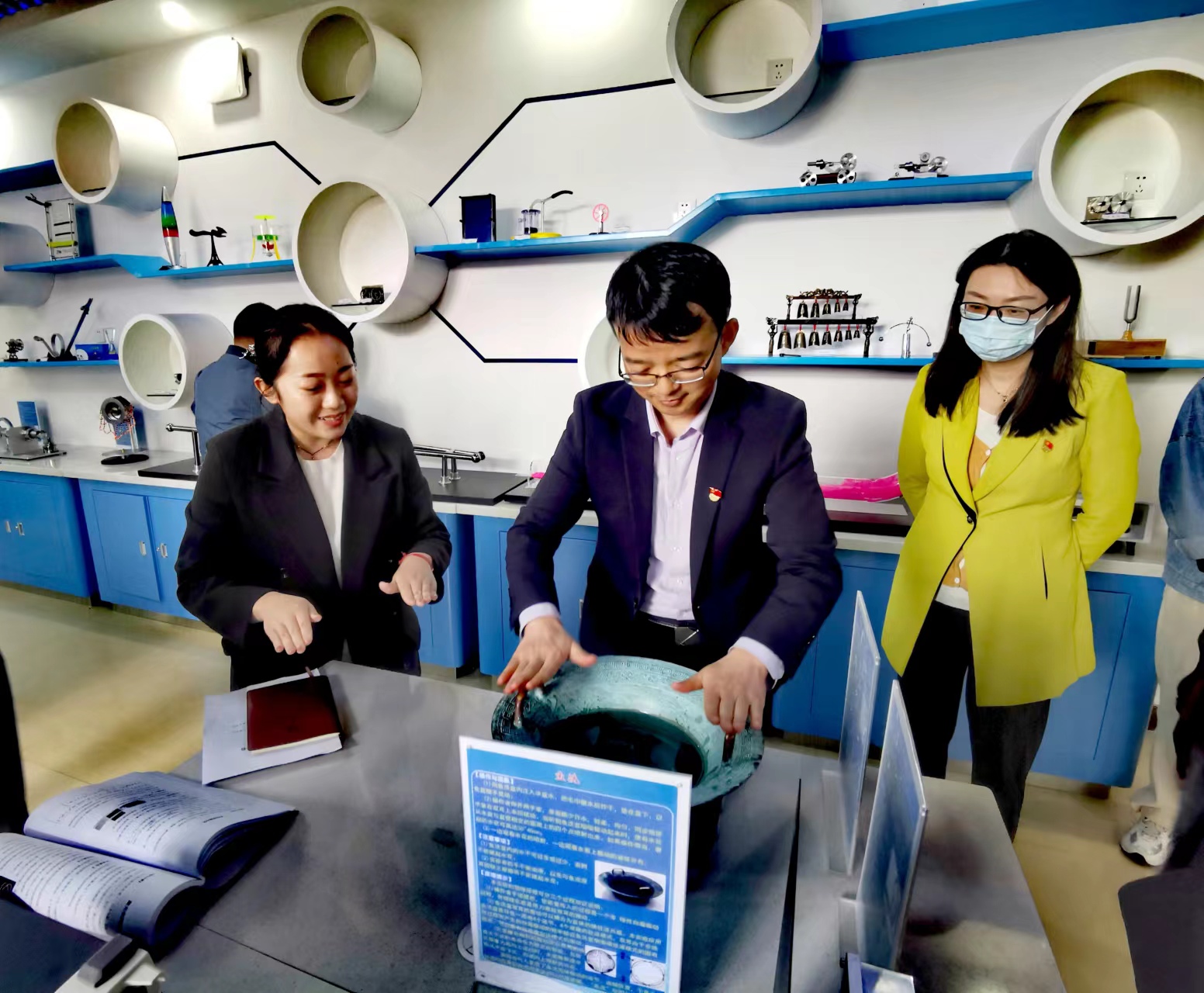 参观结束后,两个党支部的党员教师在附属中学党建活动室举行了党支部共建启动仪式。附属中学小学党支部书记王新刚和物理与电子工程学院教师第一党支部书记秦晨代表双方签订了“科普活动进校园”支部共建协议书,商定未来将以“党建引领悟物明理春风化雨”为主题持续开展丰富多彩的共建活动。王新刚老师讲到,附属中学在小学科学课程和学科教师的专业性建设方面需要进一步加强和深化,希望以此共建活动为契机,借助大学教师的力量,为小学任课教师在实验学科的专业化引领、多学科融合思路的扩展和小学生科学素养提升方面提供更多的支持和帮助。秦晨老师表示,党支部将依托“三人行”党小组,针对小学课后托管和第二课堂的需求,充分发挥专家博士团队的优势和力量,通过定期开展科普活动,激发小学生热爱科学、学好科学的兴趣和热情,为培养科学精神和创新能力、引导确立价值航向与精神坐标提供一定的支持和指导,做好小学科学教育加法。