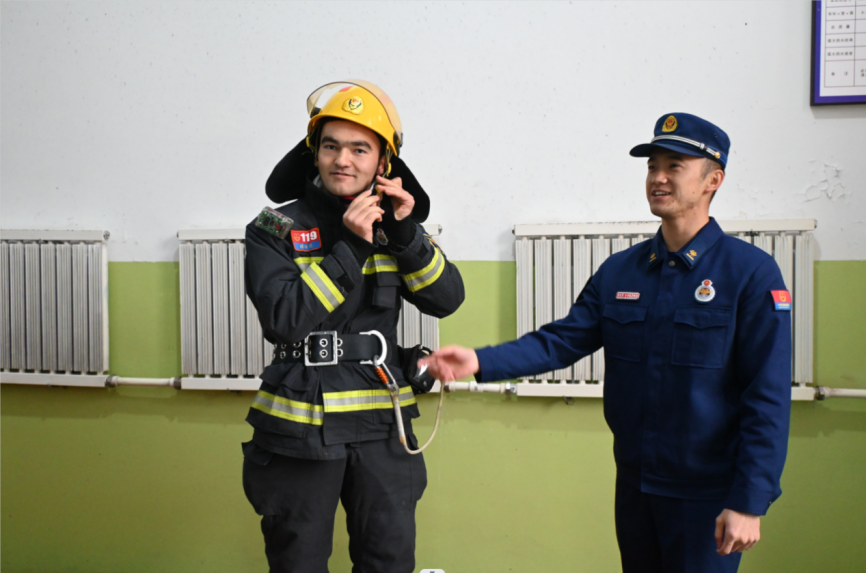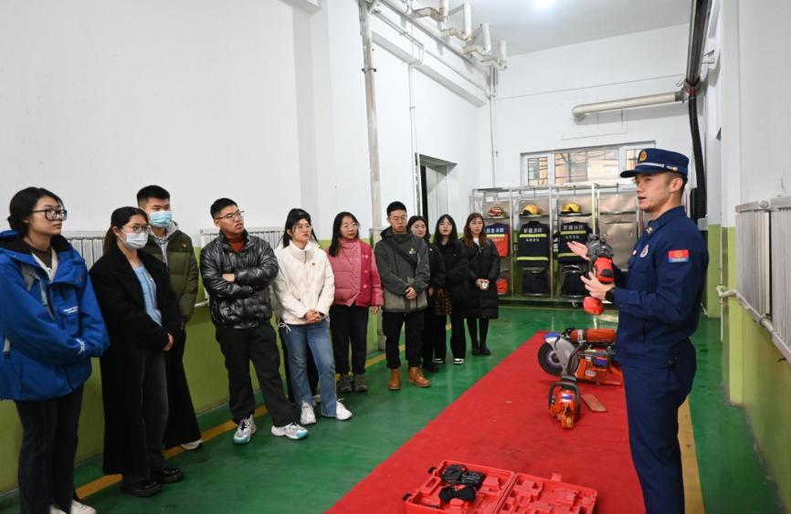 活动伊始,在主持人王梓正同志的带领下,全体党员一起学习了习近平新时代中国特色社会主义思想和党的二十大精神、习近平总书记系列重要讲话和重要指示批示精神。随后,乌鲁木齐市沙依巴克区新医路消防救援站班长带领全体党员重温了入党誓词。随即,支部党员同志们一同随着乌鲁木齐市沙依巴克区新医路消防救援站班长参观了消防员学习和生活的地方,并学习了消防执勤车辆、消防器材的用途和使用方法,了解了消防救援站的光荣历史及近年来取得的各项荣誉。部分党员、学生代表还在消防员的专业指导下,通过试穿,试用零距离体验了消防、感受了消防。