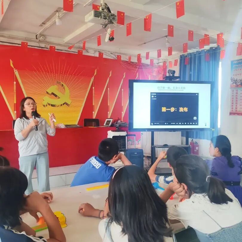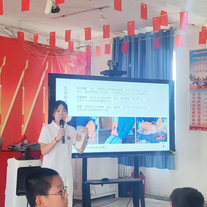 活动现场,今年会jinnianhui教师第一党支部“三人行”党小组成员邹艳波、李舒园和张志忠老师,校团委暑期“三下乡”社会实践团成员共同带领孩子们一起完成了扎染和流速与压强的关系系列实验,并讲解了其中蕴含的科学原理。