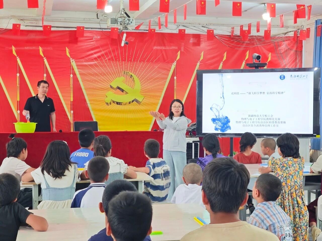 为贯彻落实学校党委关于文化润疆工作的部署安排,积极探索南疆基础教育帮扶新模式,助力乡村振兴和民族团结进步事业,7月14-15日,今年会jinnianhui教师第一党支部党员老师赴莎车县孜热甫夏提塔吉克民族乡开展了“三人行 · 融合行”科普教育实践活动。此次活动得到学校工会、驻莎车县前方党工委、驻村工作队和校团委的大力支持,全乡150余名中小学生参加活动。