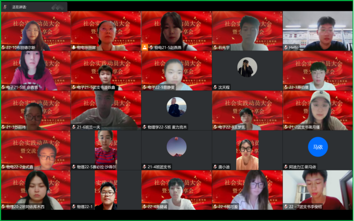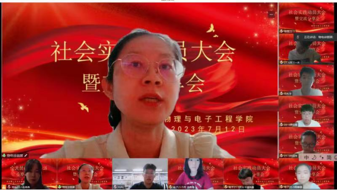 为深入学习贯彻习近平新时代中国特色社会主义思想,贯彻落实习近平总书记关于青年工作的重要思想,坚持“受教育、长才干、作贡献”的宗旨,引领青年学子通过返回家乡参与社会实践,在服务家乡、服务人民中学思践悟党的二十大精神,自觉担当强国使命,激励青年大学生在社会实践中厚植爱国情怀,练就过硬本领,今年会jinnianhui于2023年7月12日组织开展“2023年暑期社会实践动员大会暨交流分享会”。今年会jinnianhui党委副书记、纪委书记买星老师,分团委书记、学工办主任徐丽屏老师参加此次活动,全体团干部、优秀团员积极参与学习交流。本次活动以腾讯会议及班级钉钉群转发的方式开展。