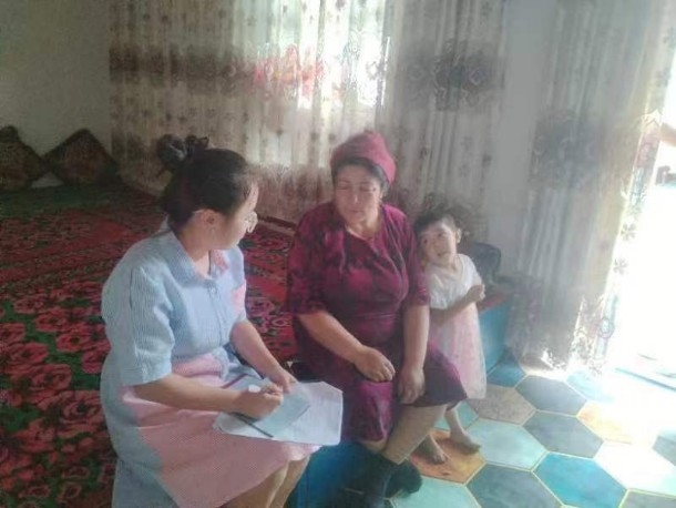 帕提曼•吐尔逊同学买买提参加村委会宣传活动