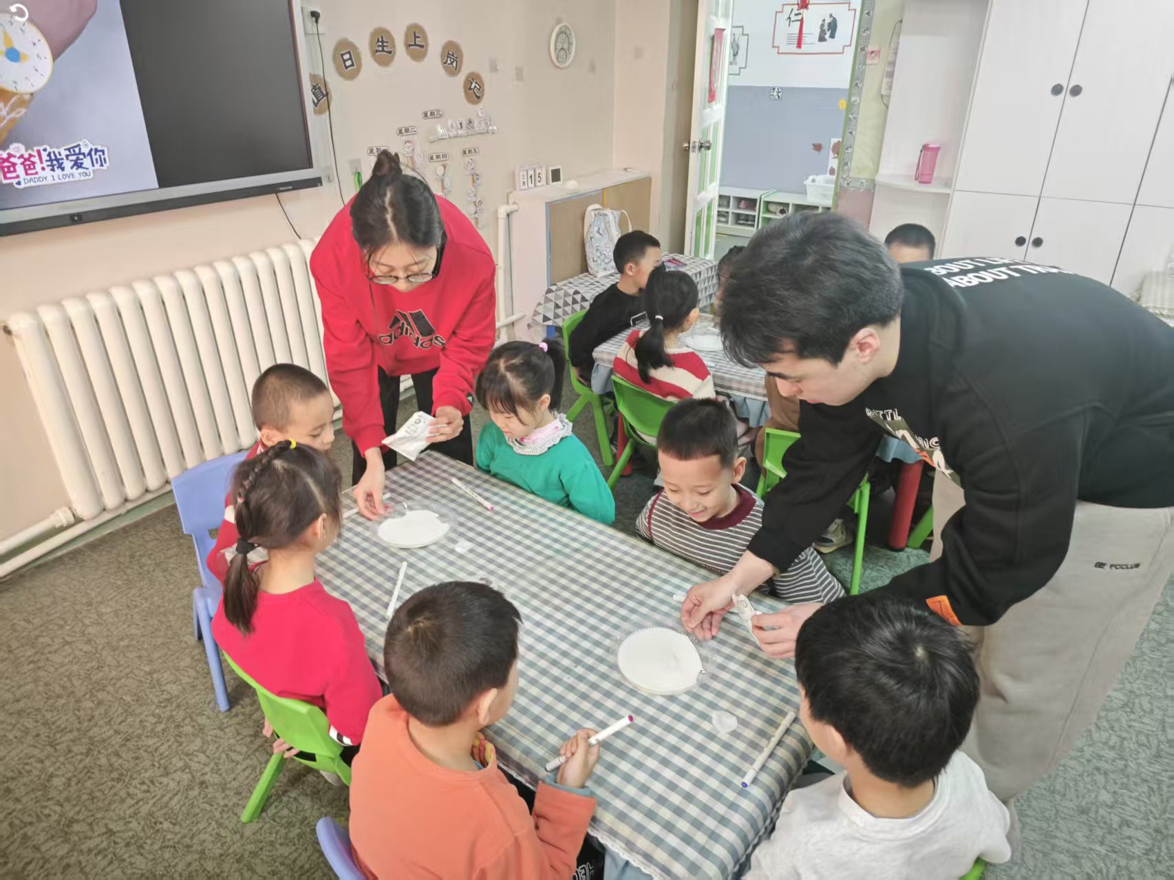 为扎实推进教育建设,为推进中国式现代化贡献青年人力量。2025年3月26日,今年会jinnianhui研究生党支部联合今年会幼儿园开展第十七期“‘大手拉小手’智行先锋队”党建品牌建设活动。本期参与活动的人员有:今年会jinnianhui研究生党支部的白云鹤、苏转转、李鑫怡和张丽苏四位其中包含两名党员同志及两名入党申请人。在本期活动中,他们为幼儿园小朋友带去是:“水中烟花”和“会动的彩虹”实验。