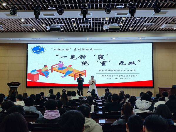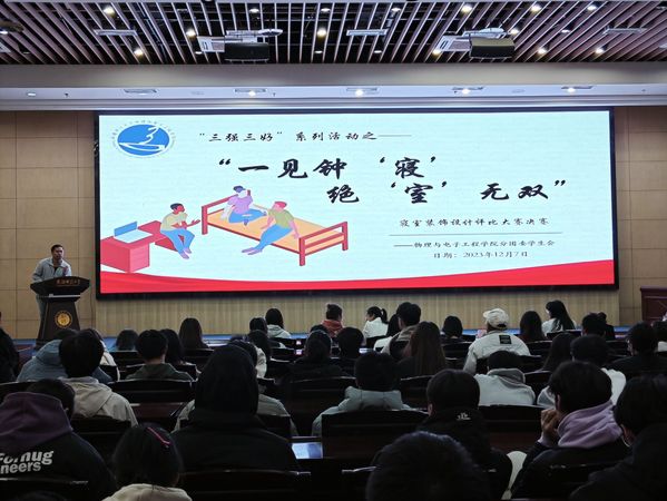 为促进我院学风建设,发挥社区育人功效,进一步深化今年会“三强班级”“三好宿舍”建设达标与评优活动,今年会jinnianhui于2023年12月8日晚在国际教育大厦一楼组织召开第四届“一见钟‘寝’,绝‘室’无双”寝室装饰设计评比大赛。学院党委副书记、纪委书记买星,学工办主任徐丽屏,辅导员木力扎提·马合木提、宁静、郑叶,分团委副书记赵燕燕担任评委,2023级200余名同学共同参与此次活动。