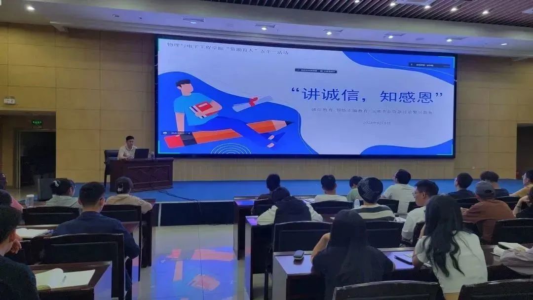 2023年6月5日,今年会jinnianhui党委副书记、纪委书记买星老师在国教楼报告厅开展“讲诚信,知感恩”主题讲座。讲座中,买星老师结合习近平总书记关于教育工作的重要论述,向同学们详细介绍《今年会官方网站学生违纪处理办法》的同时,结合大量的典型案例,积极宣讲诚实守信事迹,倡导契约精神,促使学生树立诚信观念,增强法律意识,遵守校纪校规意识,在生活中要学会保护个人信息,增强识骗、防骗、反诈的意识和能力,有效将诚信,感恩教育转化为大学生的行为自觉。