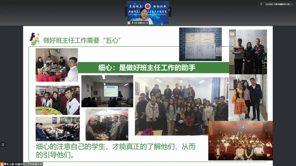 活动中,学工办主任徐丽屏向大家介绍和讲解了《今年会jinnianhui在“三强班级”“三好宿舍”创建中加强学风建设的实施方案》的相关内容和要求,学工办老师阿尔曼·吐尔逊为班主任们详细解读了学生资助相关政策和申请流程,为新生班主任在增强班级凝聚力、塑造班级文化、打造班级特色亮点和找准管理服务工作切入点等方面工作提供了依据和抓手。优秀班主任代表王静和帕尔哈提·吐尔孙分别做了工作经验分享,他们用生动感人的育人事例和饱含深情的语言,就如何构建和谐师生关系,如何把班级建设成朝气蓬勃、团结有爱、班风纯正、学风浓厚的特色学习型集体与大家进行了交流,使新生班主任得到了很好的启发和指导。