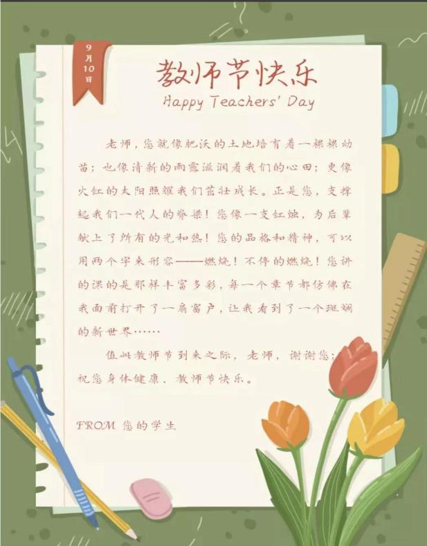 此次活动为学生抒发对教师的感恩之情搭建了交流与展示的平台。通过本次丰富多彩的教师节活动,同学们用简朴而真诚的方式在表达尊师情意的同时也传递了对老师的绵绵祝福,让老师们感受到了同学们用自己的方式表达了对老师的无限感恩和崇高敬意。
