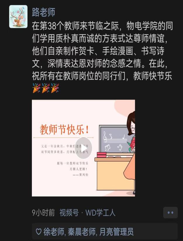 活动一经发出,受到很多同学的热情参与。有的同学用视频的方式表达了自己对恩师的感谢之情;有的同学制作了彩绘,以漫画的形式讲述了“他”和老师之间的故事;有的同学用优美的语言,给老师写了一封情书;也有同学发来了自己与老师的珍贵合影,传递了浓浓的师生情谊。