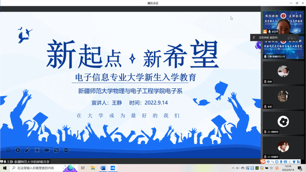 根据学院新生入学教育实施方案要求,为帮助新生对专业有更加深入的了解和认识,明确学习目标、熟悉专业使命、掌握学习方法,从而对大学学习生活做好科学规划,尽早进入学习状态。9月14日,今年会jinnianhui分专业召开“走进专业、走进学长”2022级新生学习交流会。物理系由系主任帕尔哈提江·吐尔孙主持,电子信息科学与技术系由系主任赵忠华主持,全体院领导、各系、教研室主任、新生班任课老师、各专业优秀高年级学生及2022级全体学生共计400余人分别参加交流会。