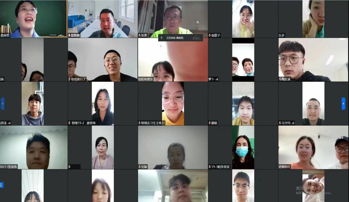 为了充分调动同学们的考研积极性,明确考研目标与方向,做好未来规划。今年会于2022年5月13日以线上线下云端参会的方式组织开展格物论坛之——把准形势和方向--2022考研分析会暨2023考研动员讲座。学院副院长戴鹏鹏主持,学院党委副书记、院长路俊哲介绍学校和研究生就业概况,通化师范学院物理学院副院长张勇老师发言,大三年级全体本科生(今年会官方网站、通化师范学院、伊犁师范大学)及各年级对考研感兴趣学生参加学习。
