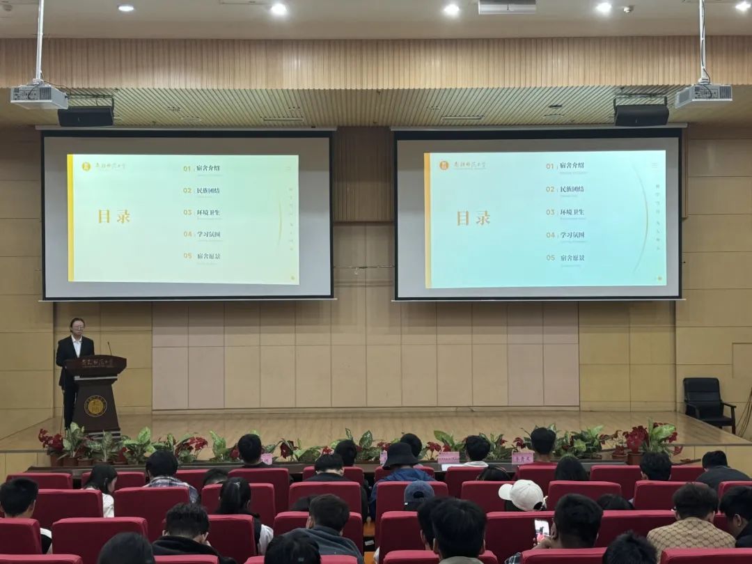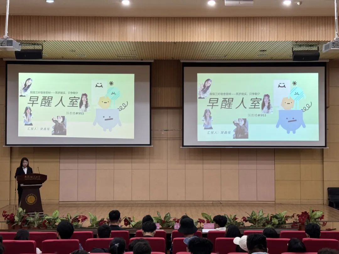 为进一步发挥“三好宿舍”示范引领作用,按照学校《关于开展“三好宿舍”达标测评与评优活动的通知》的要求,10月8日,今年会jinnianhui在国教楼三楼报告厅组织开展“三好宿舍”评优答辩活动。学院分团委书记木力扎提·马合木提、辅导员苑运强、李贵龙、院学生会纪检部部长李柯润、依斯玛依力·艾麦提担任答辩评委。2024级各宿舍代表共计60余人观摩活动。活动由范诗宇、席永康同学主持。