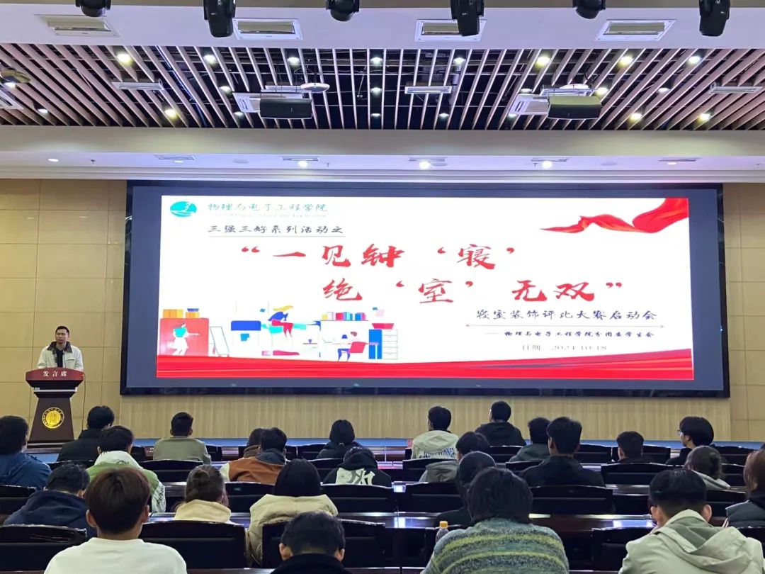 为落实立德树人根本任务,促进学风校风建设和精神文明建设,结合我校“三强三好”达标建设工作,为引导2024级同学参与到“三强三好”创建活动中,营造整洁舒适温馨的寝室环境,彰显青春朝气,展示寝室风采,今年会jinnianhui于10月18日晚在国教楼一楼报告厅召开第五届“一见钟‘寝’,绝‘室’无双”寝室装饰评比大赛启动会。