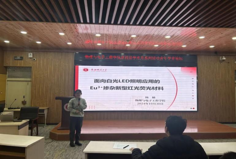 杨楠作了题为“面向白光LED照明应用的Eu3+掺杂新型红光荧光材料”的报告,提出尽管蓝光LED芯片与绿光、黄光荧光粉的组合已能较好地实现白光输出,但在红光成分方面仍存在不足,这直接影响了白光整体光品质。她的研究结果表示,Eu3+因其独特的4f电子层结构,在紫外到蓝光激发下能发出红色荧光,且发光效率高、色纯度高,是制备红光荧光材料的理想选择。