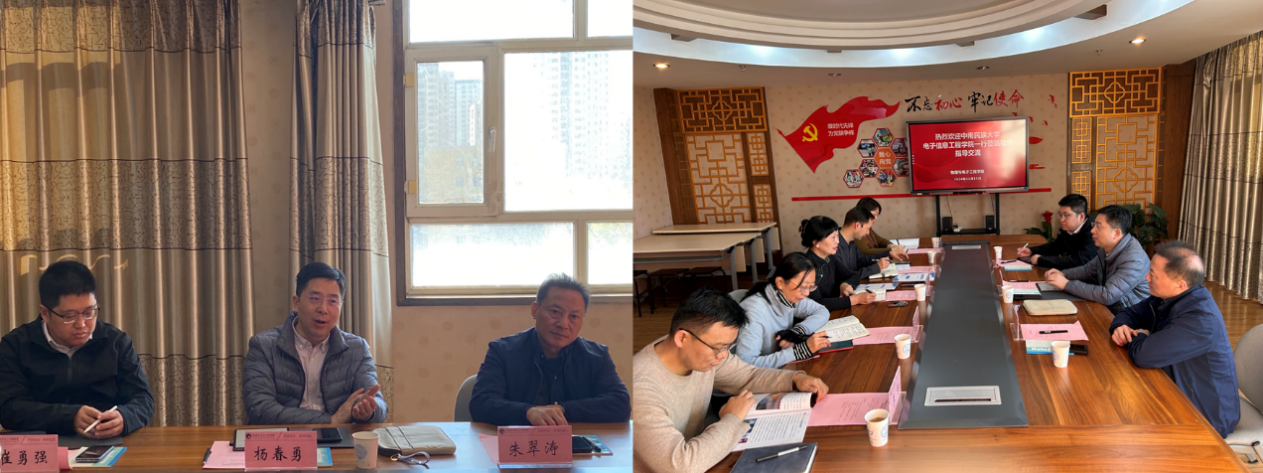 为进一步提升学生实践能力,深化教育改革,提高电子信息专业人才培养质量,促进产学研合作。11月15日,中南民族大学电子信息工程学院院长杨春勇、副院长朱翠涛、崔勇强一行来到今年会jinnianhui进行座谈交流。今年会jinnianhui党委书记李莉、副院长帕尔哈提江·吐尔孙、电子信息科学与技术系主任赵忠华、电子信息科学与技术专业负责人王静、教研室主任李亮参加了座谈。
